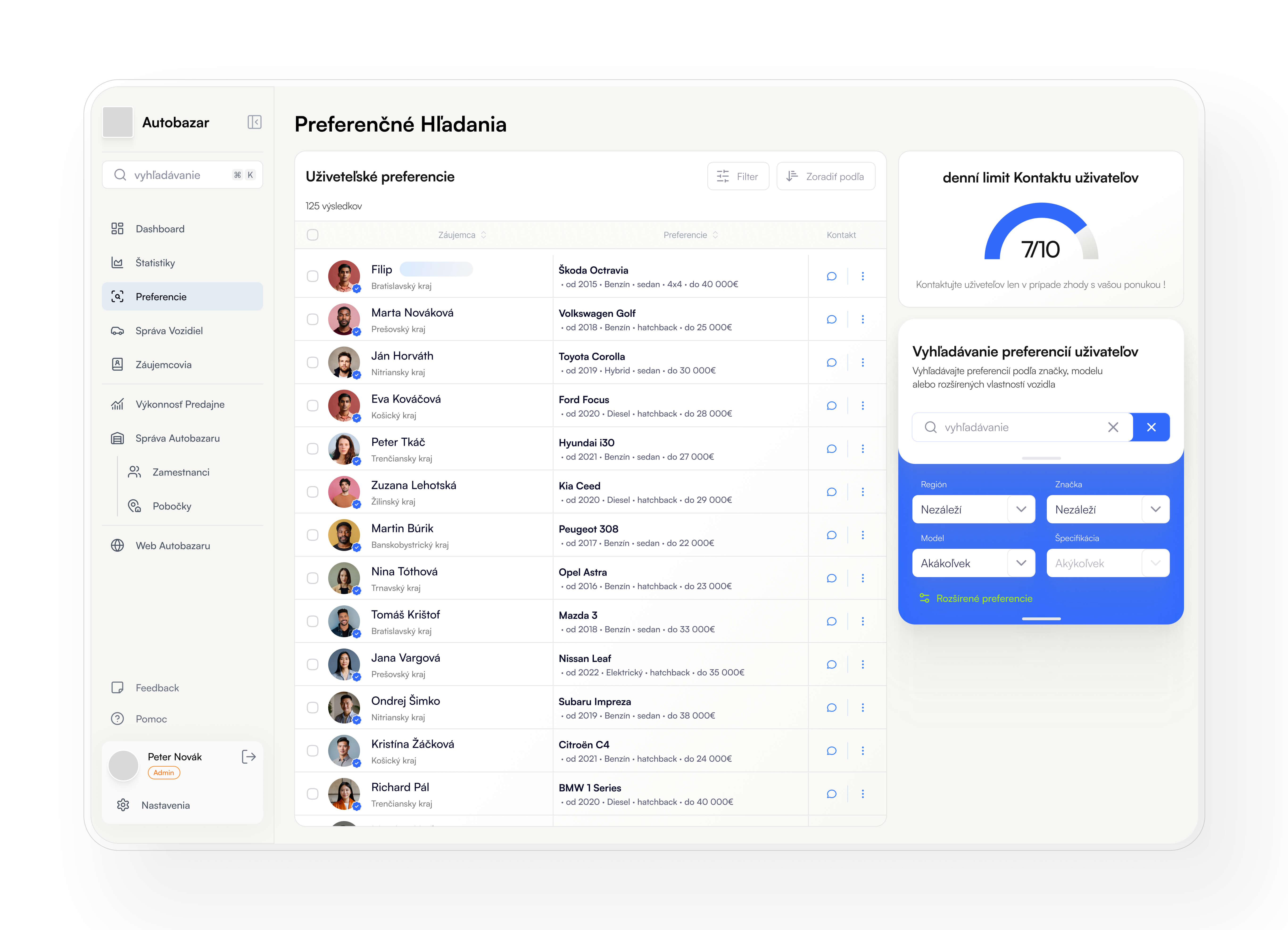 Enable dealers to search for people by preferences and vehicle model and contact them en masse.